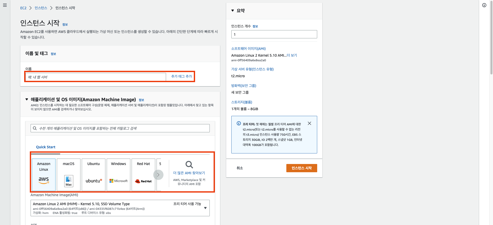 이후 인스턴스 시작 버튼 클릭.