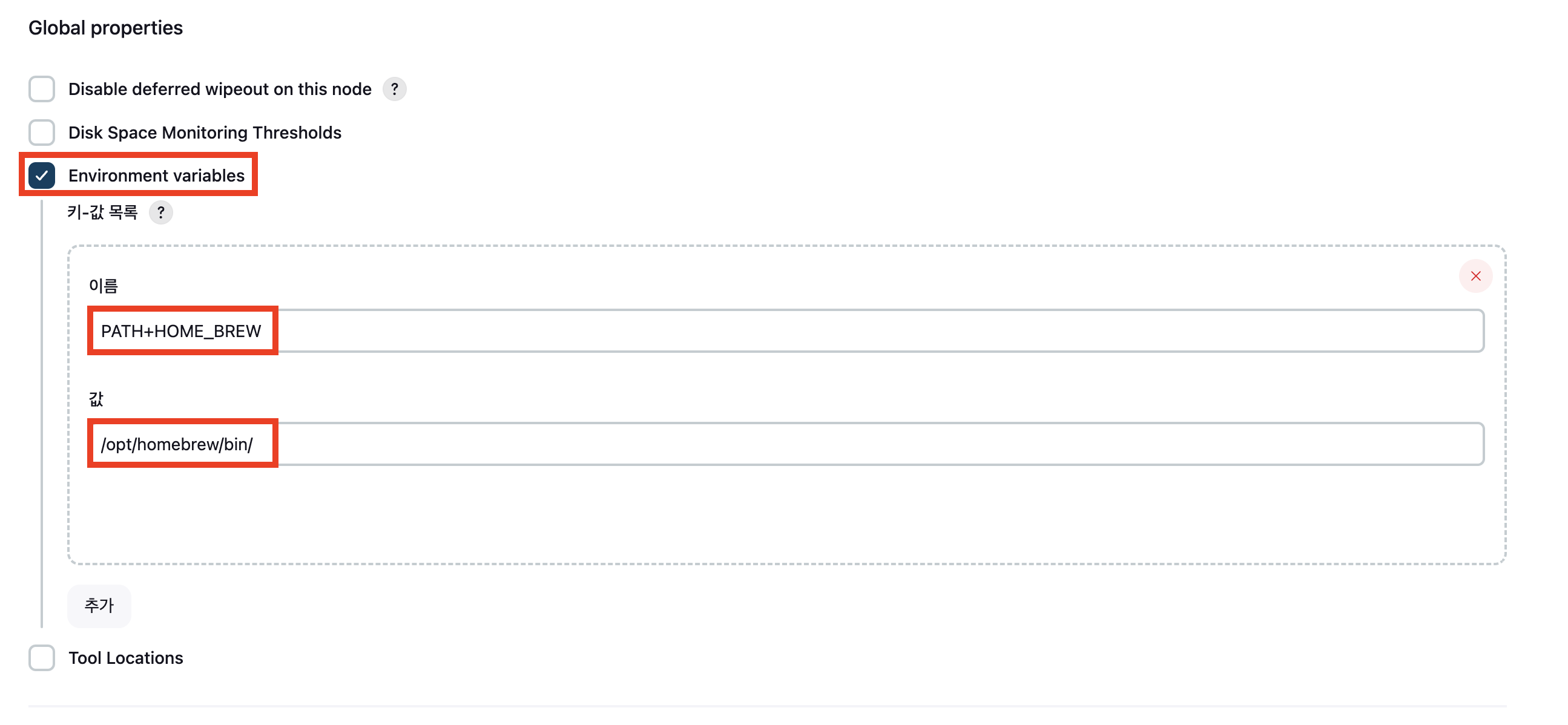 Global properties 라는 환경 변수를 설정하는 탭에 이동해 homebrew 경로를 넣어준다. 이때 본인의 Mac OS의 homebrew 경로값을 위와 같이 추가하고 변경사항을 저장하면 정상적으로 빌드에 성공하는것을 확인할 수 있다.