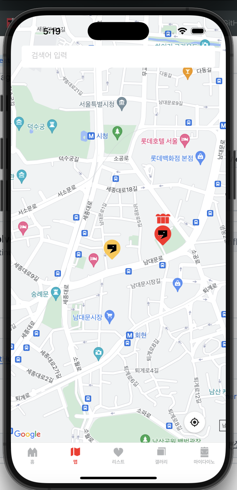 우리가 선정한 주제는 요즘 본인이 좋아하는 맛집들을 구글이나 네이버 맵과 같은 플랫폼에 좌표를 찍어서 개별로 저장하고 서로 공유하는 경우가 많이 있었는데, 이를 바탕으로 지도를 이용하여 개인의 다녀왔던 맛집에 대한 내용을 기록하고, 분류하여 내가 좋아하는 음식점을 기록하고, 음식 취향에 대해서 그래픽으로 표현하고 공유하는 형태의 내용으로 프로젝트를 진행하면 재밌을 것 같다는 생각이 들었다. 앱을 사용하는 유저가 음식점을 기록하는 공룡이라는 컨셉을 잡고, 기획부터 디자인까지 진행 중이다. 회사 업무와 공부도 함께 병행하면서 진행하고 있어서 속도가 조금 더디긴 하지만, 같이 작업하는 분들과 재밌게 소통하고 개발하고 있어서 올해 초중순 출시를 목표로 개발 중에 있다.